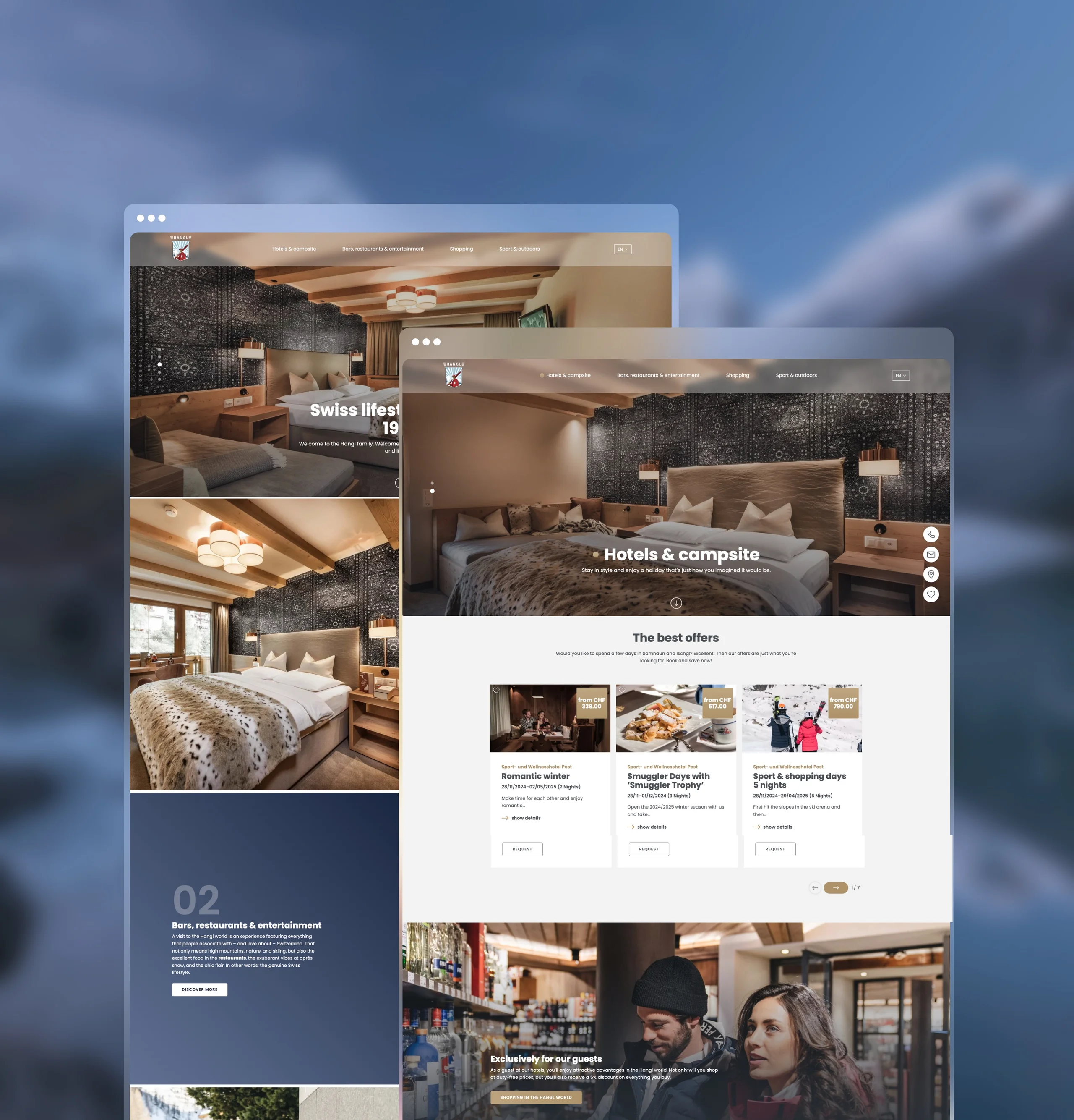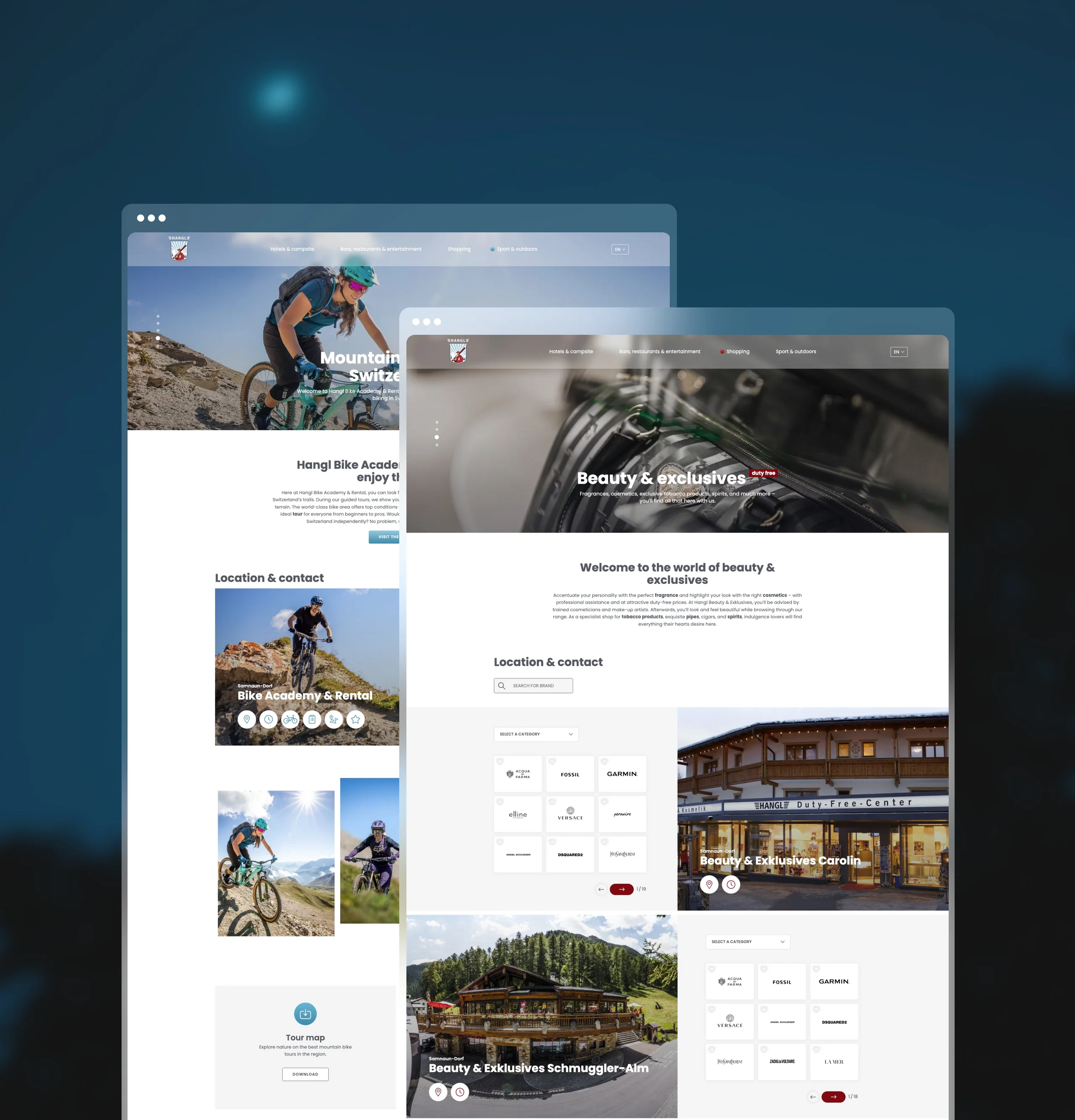 Two hotels, a campsite, different restaurants, various duty-free shops, two fuel stations, a ski school, and a bike academy: the Hangl world includes all that. Thanks to a coherent overall image, both structured and overarching, the individual companies are to be given a consistent character. The visions and values of the Hangl family should run like a red thread through the website, without restricting the flexibility of the individual companies.