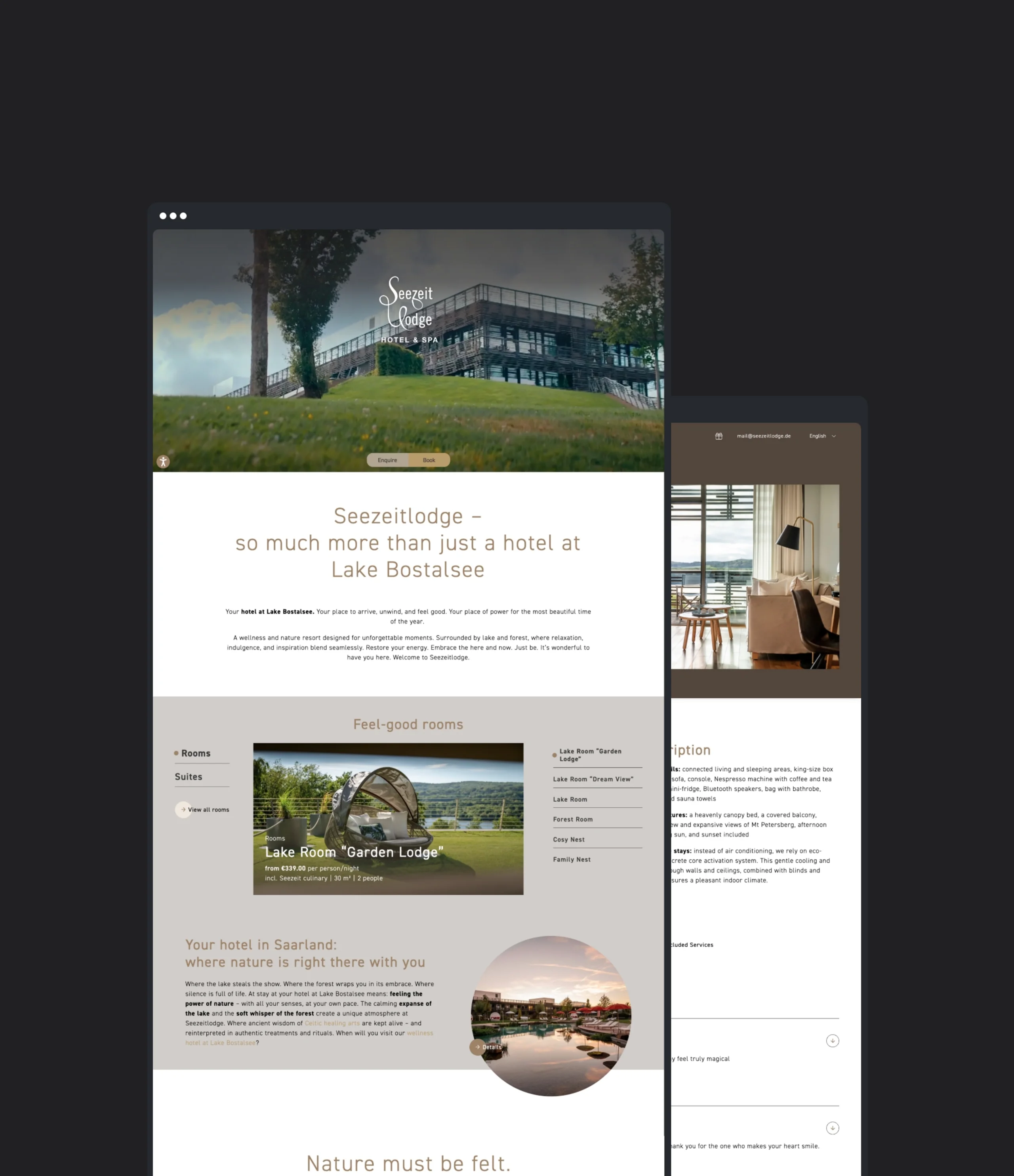 Between lake and forest, where Celtic heritage meets modern design: The Seezeitlodge is no ordinary hotel. However, this was not reflected in its online presence. The website was convoluted, the systems not interconnected, the potential untapped. The hosts Kathrin and Christian Sersch knew: They needed a partner who could change that – across the board.