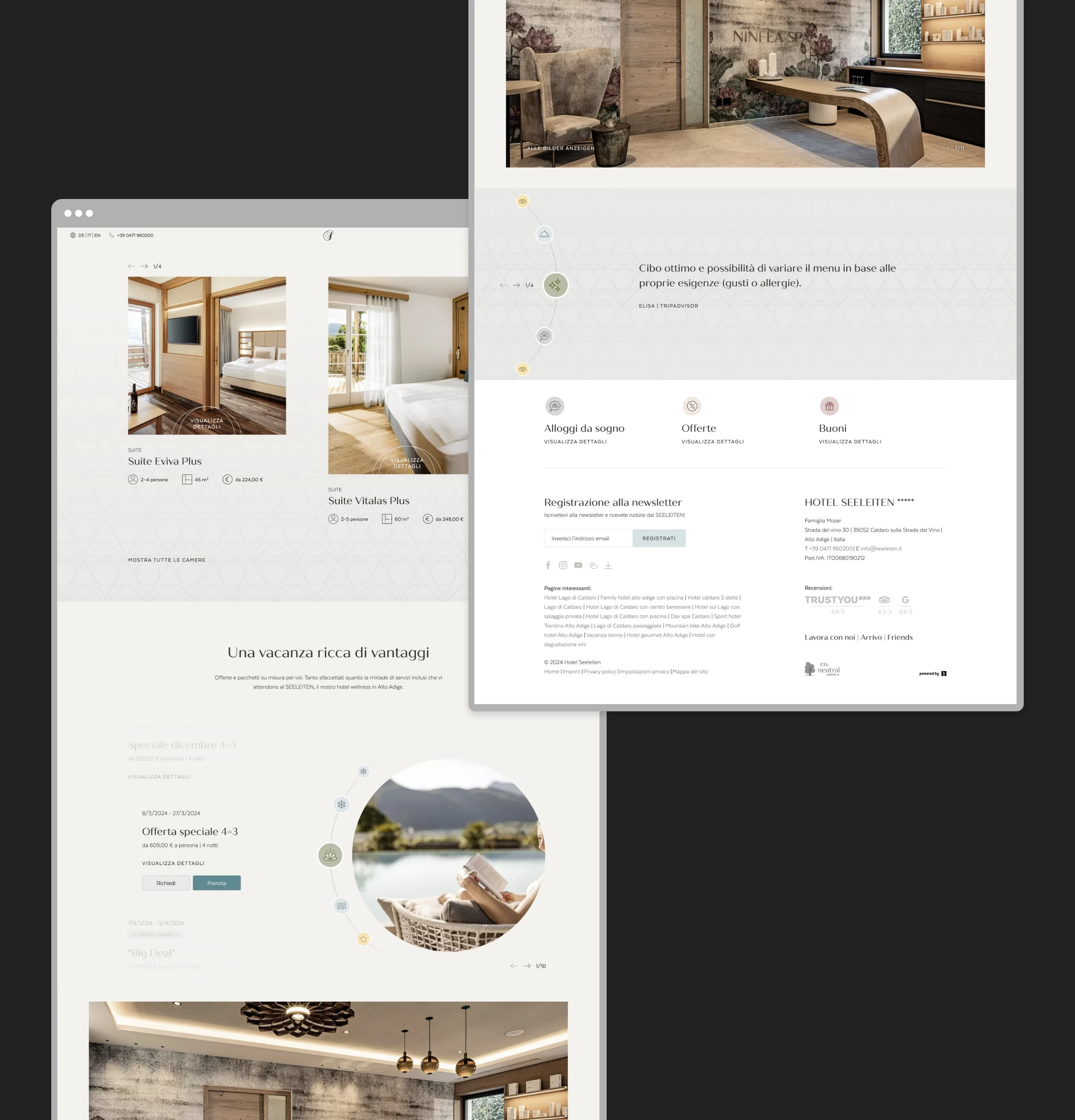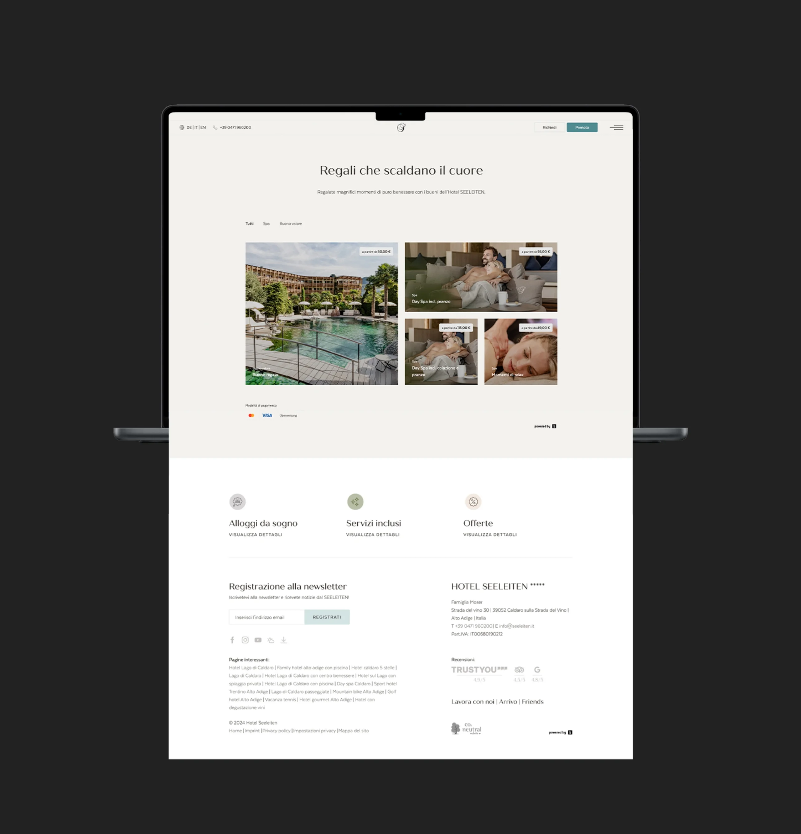 Il Lake Spa Hotel SEELEITEN nel sud dell’Alto Adige è un luogo in cui si arriva e ci si sente subito come a casa. Ogni volta, come se fosse la prima. Cosa lo contraddistingue? Le persone, La qualità, Il calore. Ma anche lo spazio, la vista sul lago e la libertà. Sensazioni che si colgono sin dal primo istante, proprio come ha sempre sognato la famiglia Mair. Un sogno che Brandnamic ha trasformato in realtà con il suo concetto di comunicazione su misura.