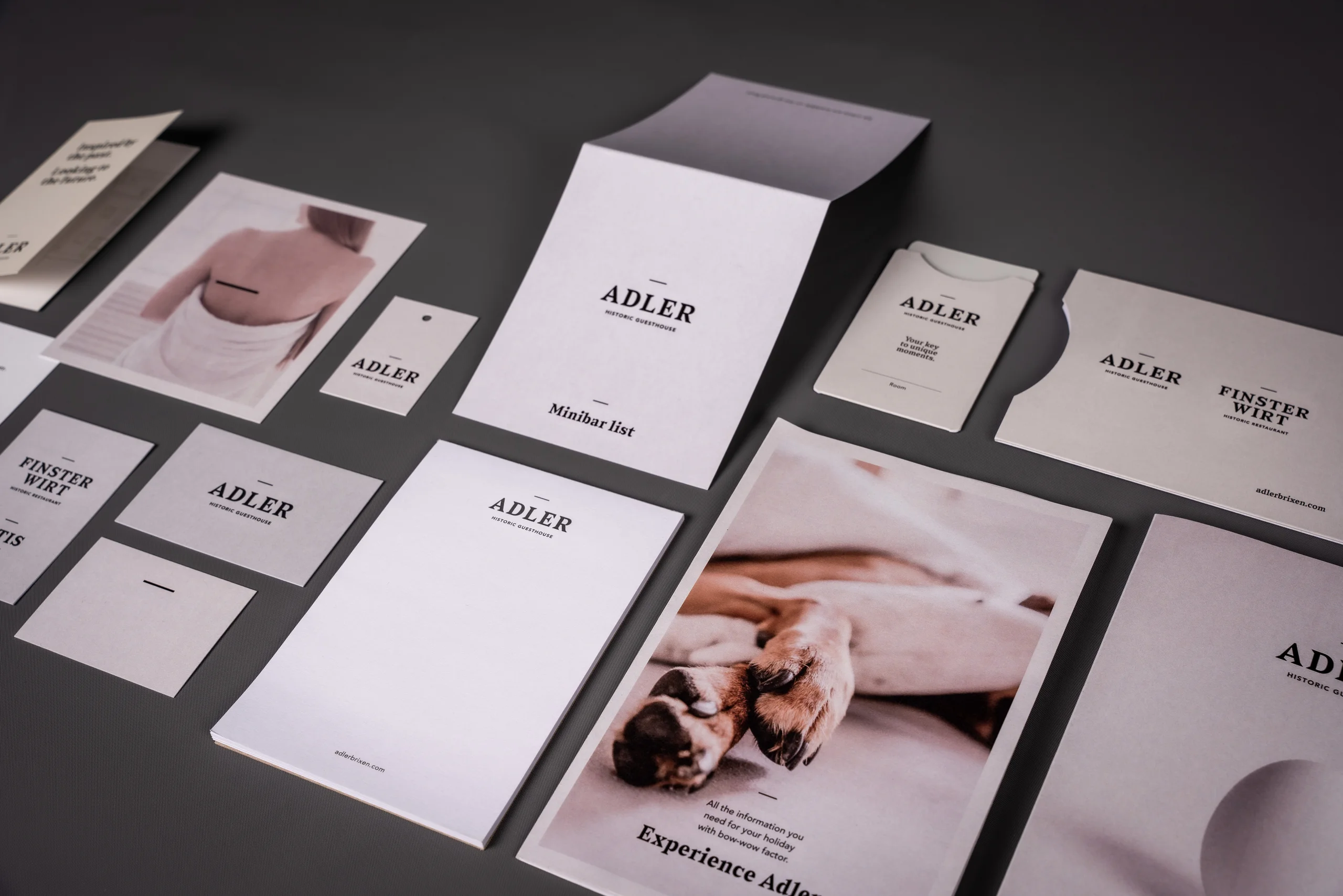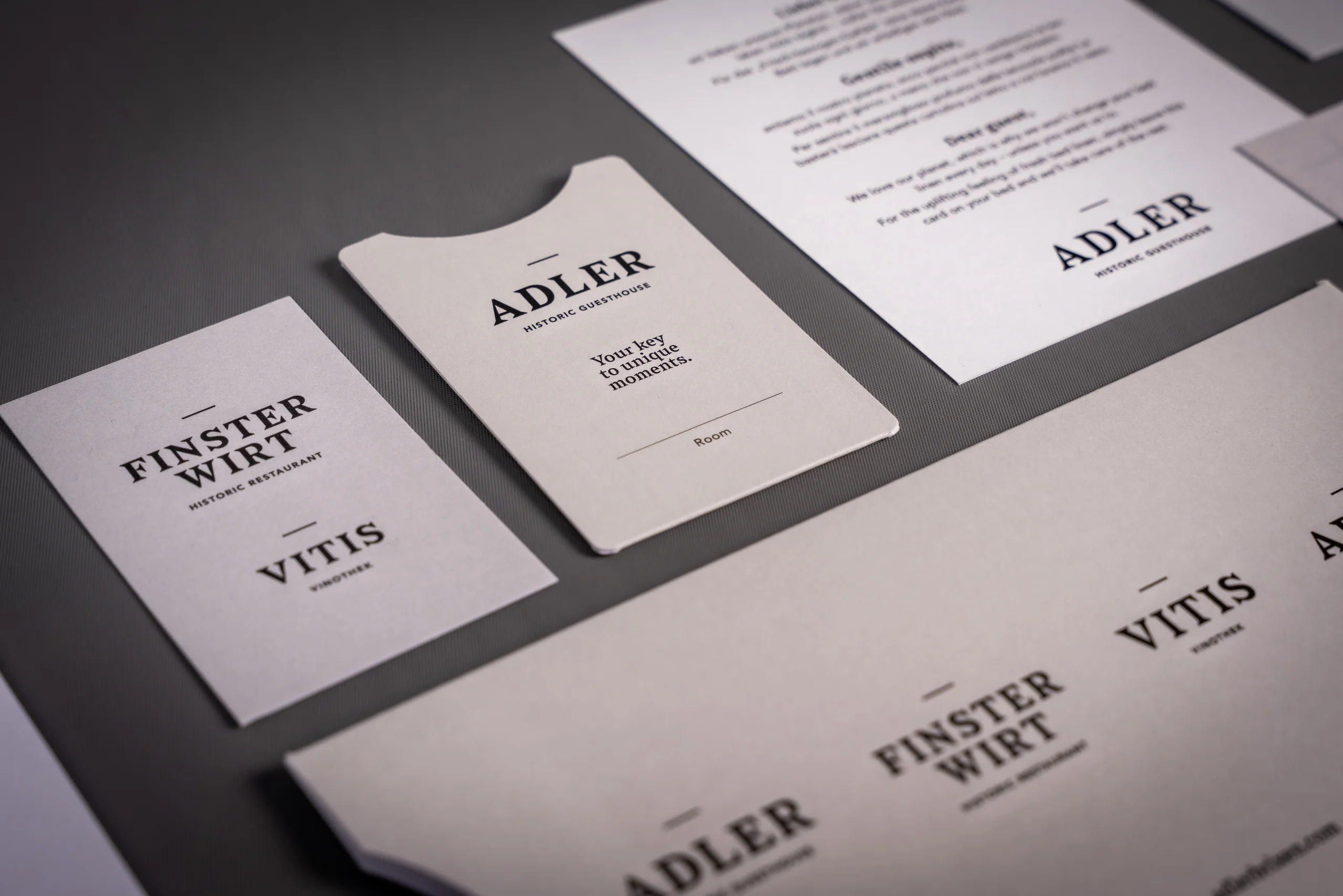 Qualität und Tradition, Geschichte und Komfort – das ganzheitliche Konzept des Adler Historic Guesthouse baut auf diesen vier Säulen auf. Die Corporate Identity reflektiert diesen Anspruch: von der Farbauswahl bis hin zum Wording, konsequent auf allen Kanälen.