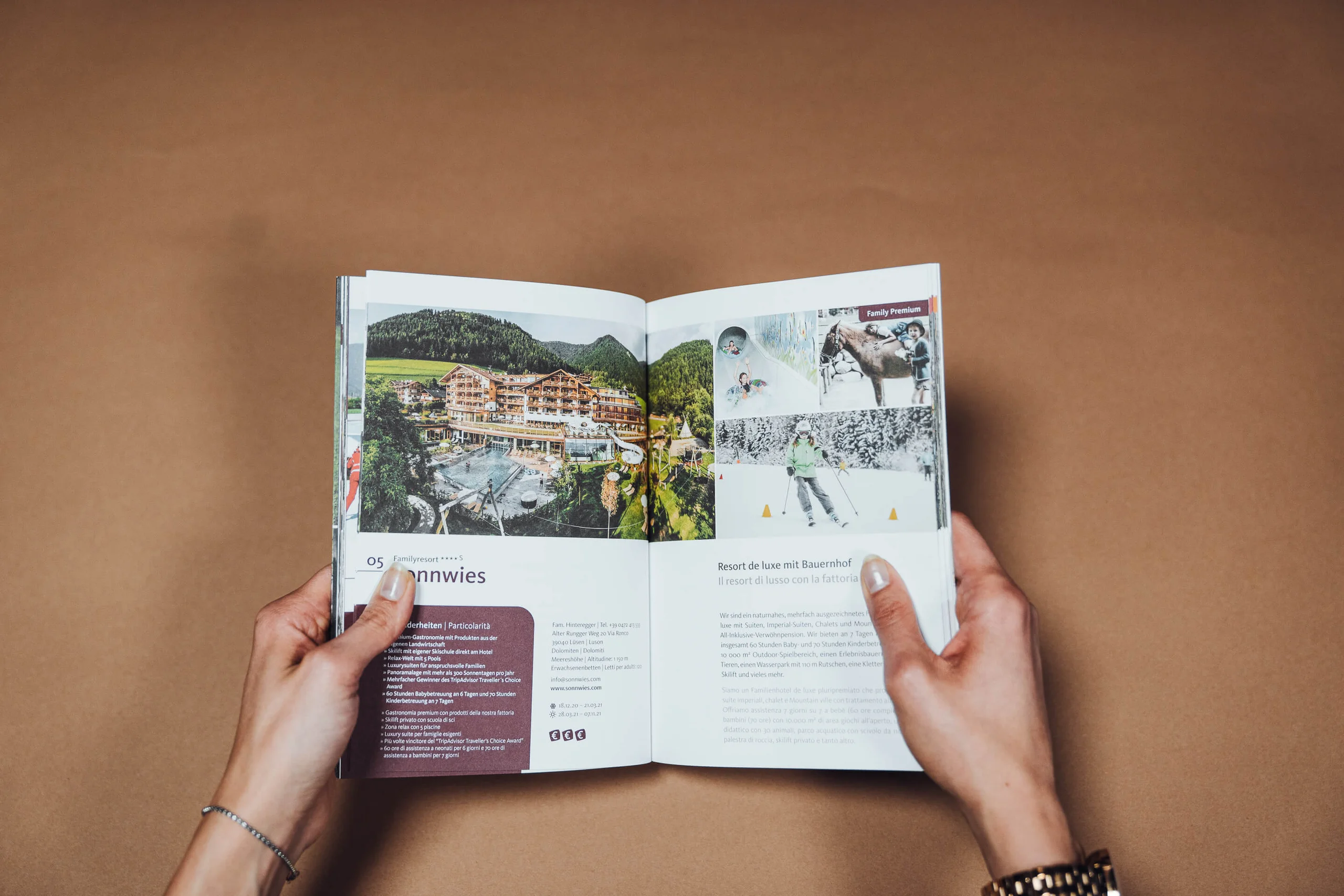 Logo und Signet | Website | Landingpage | SEO | Hosting | Storytelling | Blog | Foto- und Videosprache | Social Media Wall | Social-Media-Betreuung | Newsletter | Pressearbeit | Getavo | Meta Ads | Facebook Ads | Strategische Hotelberatung | Projektmanagement | Mitgliederbetreuung | Geschäftsführung der Kooperation | SEA | News Interface | TikTok Ads | Stellenausschreibungen joobz.it | Print-Kampagnen | PushPanda | Drucksorten: Geschäftsberichte, Katalog, Mitarbeiterbooklet, A-bis-Z-Büchlein, Medienblatt, Pressemitteilungen, Drucksorten für Vollversammlungen, Familix Nature Programme, Fahnen, Lätzchen, Gutscheine, Briefpapier und Kuverts