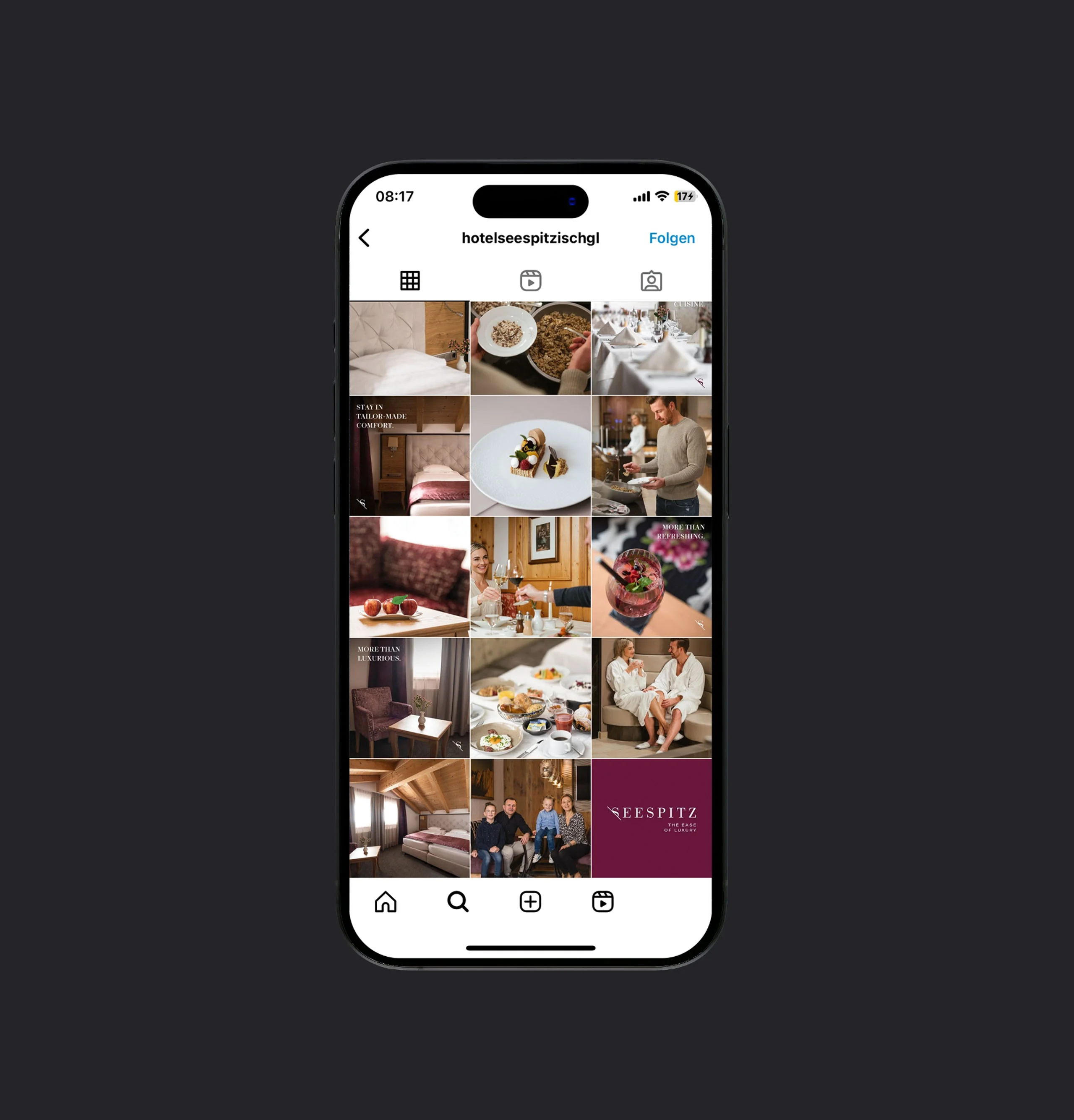 Im Hotel Seespitz erleben die Gäste den beliebten Wintersportort Ischgl in allen seinen Facetten – aber eben noch viel mehr als das. Denn beim Betreten des Hotels tauchen sie ein in eine Welt voller Leichtigkeit, Stil und Wohlgefühl, die in vielerlei Hinsicht zu begeistern weiß: durch außergewöhnliche Serviceorientierung, durch ein Kulinarikkonzept, das überrascht, und durch zahlreiche Wohlfühlhighlights für Aktive. Diese Positionierung wurde durch das Markenkonzept aus der Feder unserer kreativen Köpfe nicht nur geschärft, sondern fand auch auf edle und gleichermaßen frische Weise Einzug in die Kommunikation. Die Erstellung des neuen, perfekt darauf abgestimmten Logos, die Neugestaltung verschiedener Drucksorten und der Refresh der Social-Media-Kanäle rundete den Brand-Design-Prozess harmonisch ab.