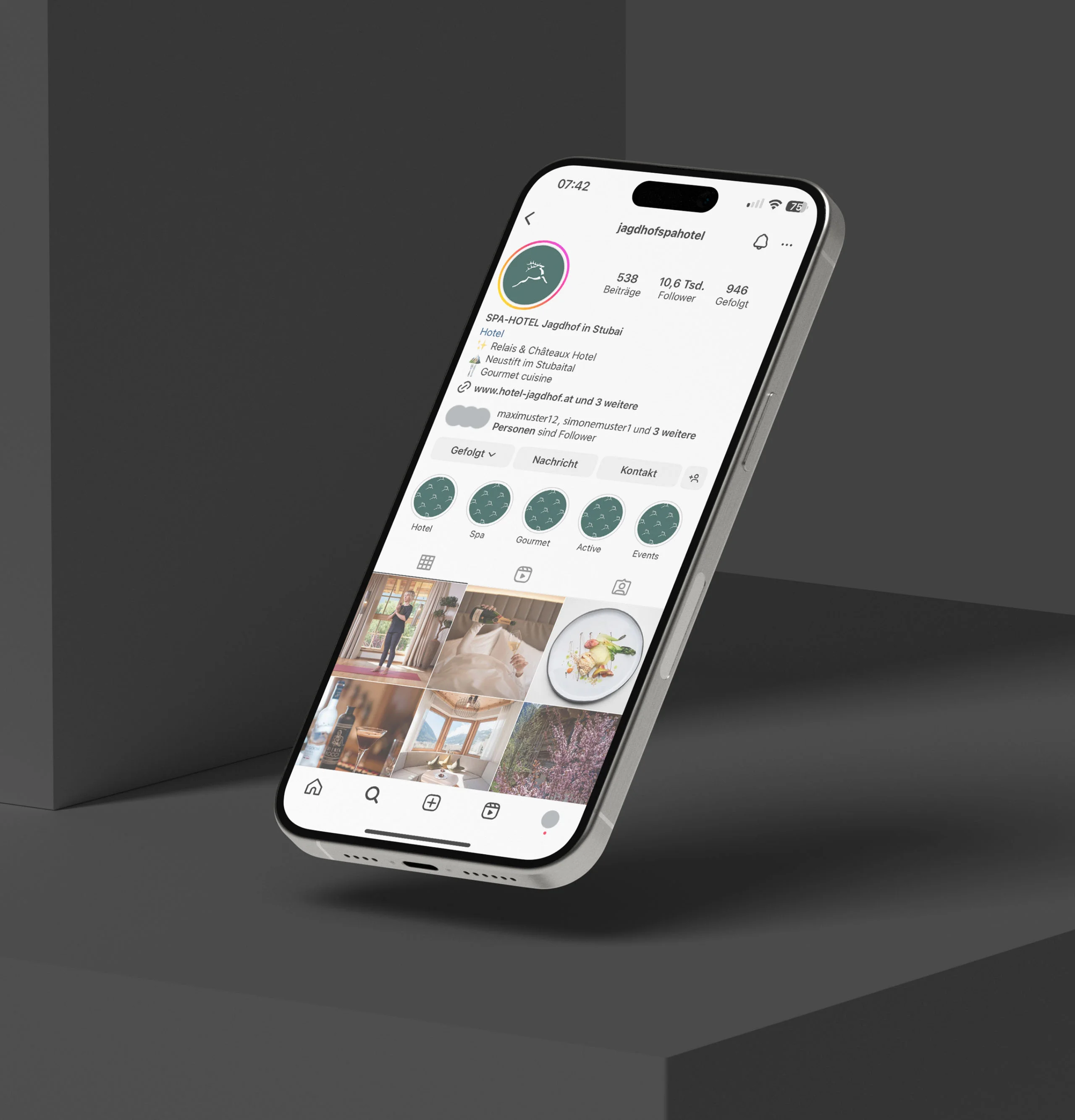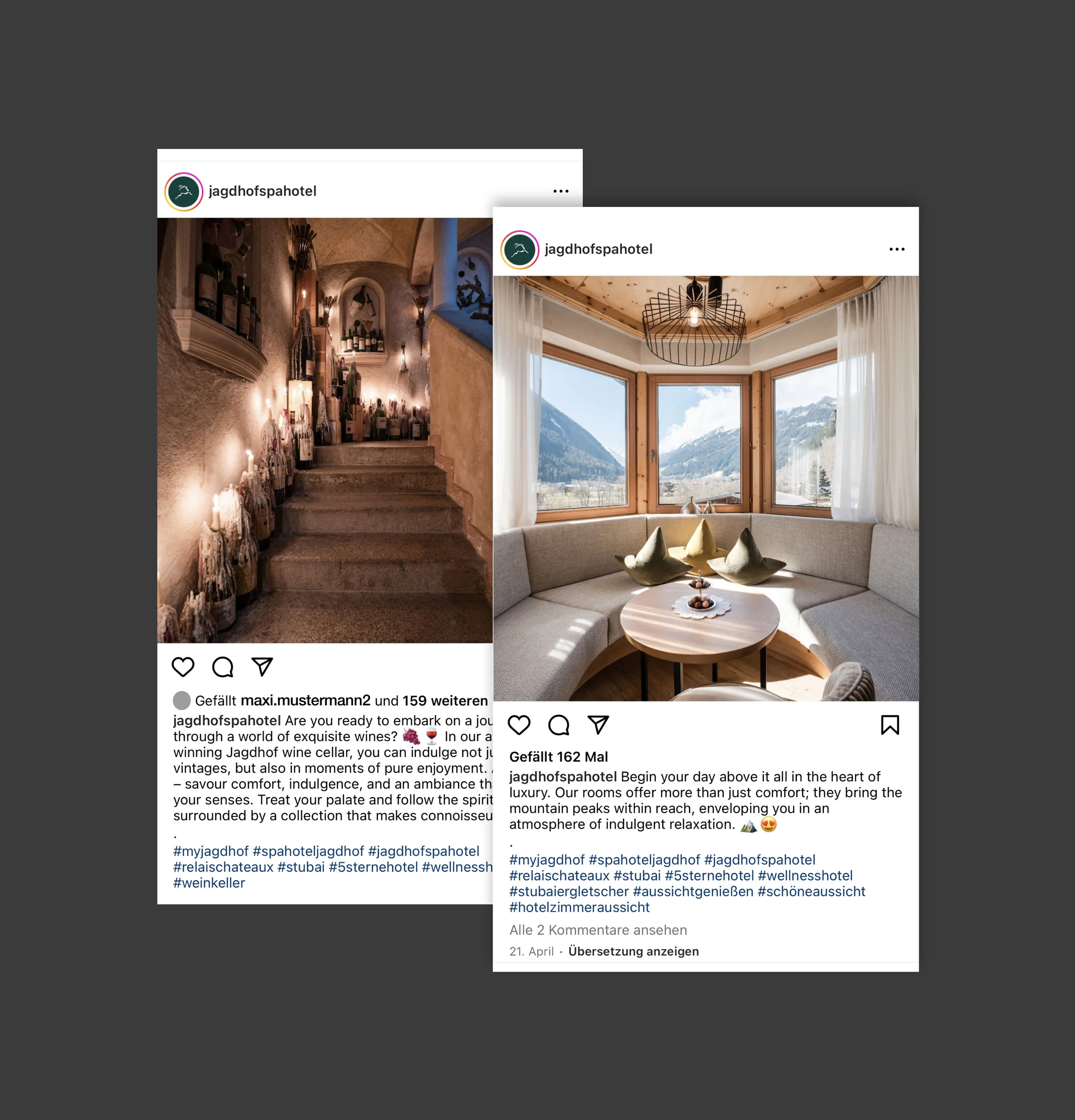 Die Schönheit des Hauses und der Umgebung sichtbar zu machen, Tradition und Innovation zu vereinen und Gäste dazu einzuladen, das Relais & Châteaux Spa Hotel Jagdhof selbst zu erleben sind die Aufgaben, die sich uns stellten. Mit Hilfe eines neugestalteten Auftritts in den sozialen samt ansprechender visueller Inhalte, inspirierenden Geschichten und interaktiven Elemente entsteht eine lebendige Online-Community.